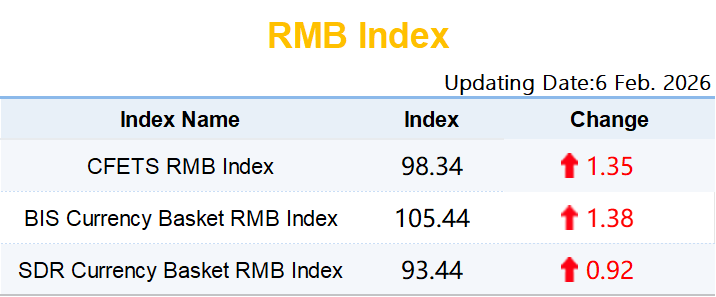 1. CFETS RMB Index mainly refers to CFETS (China Foreign Exchange Trade System) currency basket, including CNY versus FX currency pair listed on CFETS. The sample currency weight is calculated by international trade weight with adjustments of re-export trade factors. The sample currency value refers to the daily CNY Central Parity Rate. The baseline date is 31th Dec 2014. The baseline index value is 100 points. The index is calculated by the geometric mean method.